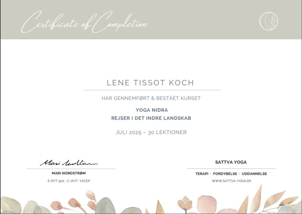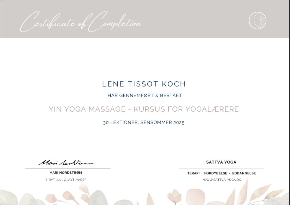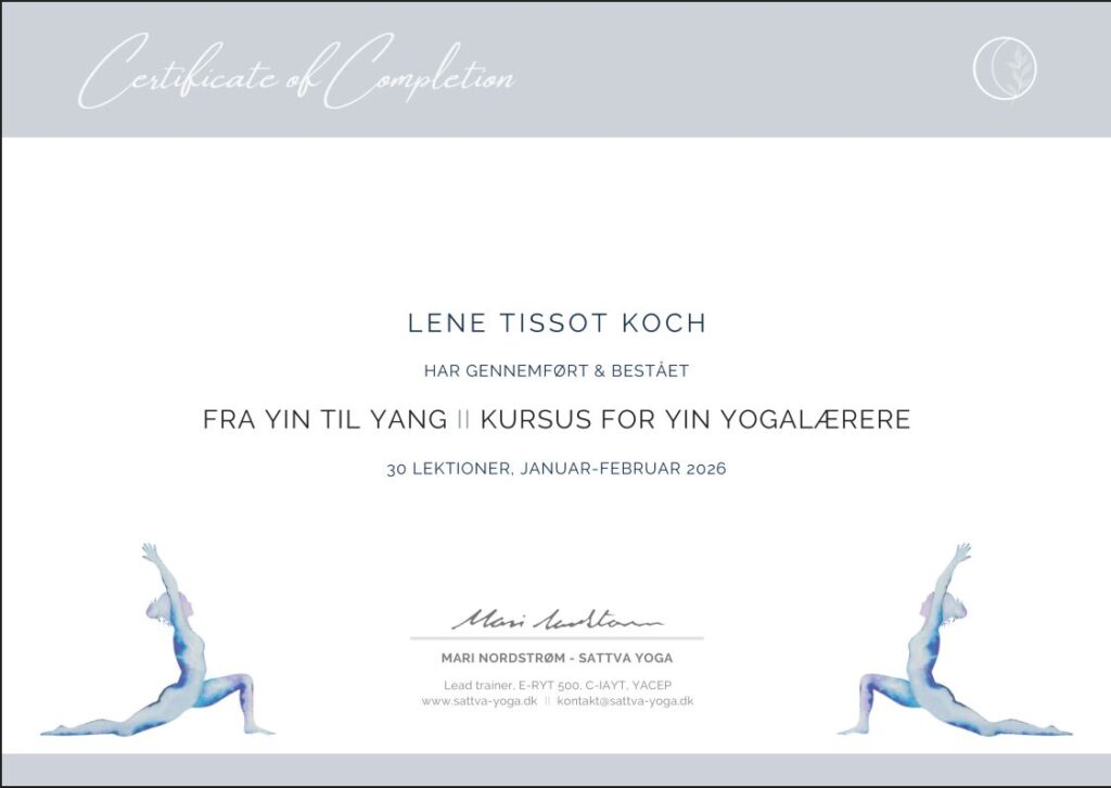I løbet af sommeren tog jeg yin yogauddannelsen færdig, og siden har jeg suppleret med kurser i “Yoga Nidra”, “Yin Massage”, og senest her i januar 2026 kurset “Yin til yang”.